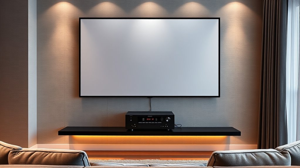 You can seamlessly integrate smart home controls with your AV system by setting up voice control through platforms like Alexa or Google Assistant. Use automation integration to connect your AV receiver and projector with your smart home hub, enabling you to control everything with simple commands. Linking these systems allows you to automate lighting, sound, and projection settings, creating a more intuitive, hands-free entertainment experience tailored to your preferences.