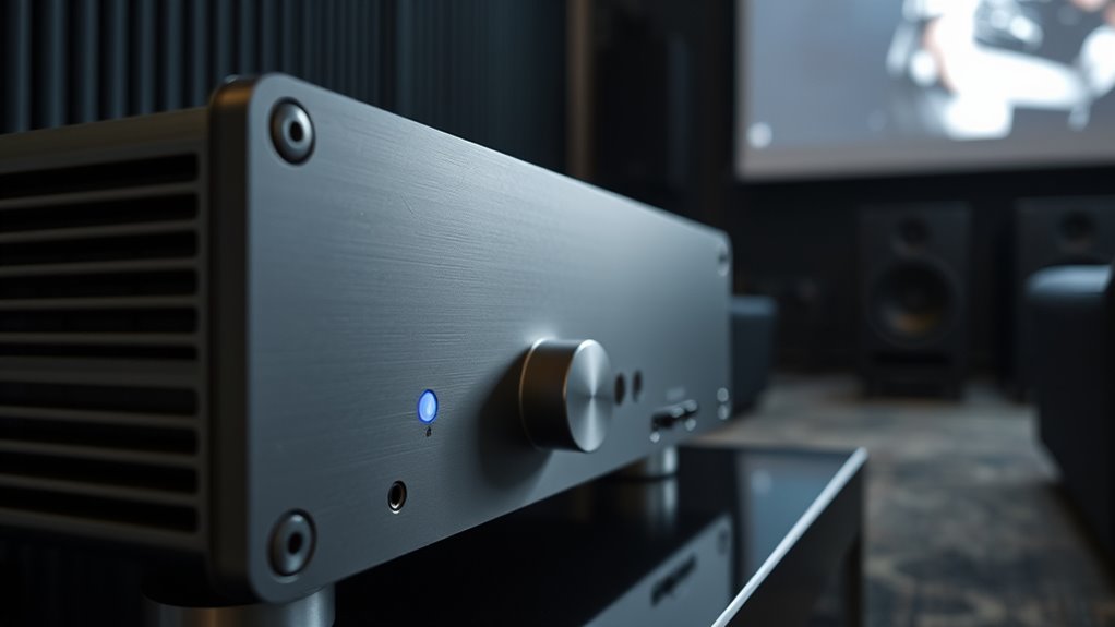 Since DAC quality directly influences how well your projector reduces noise, it plays a crucial role in maintaining sound clarity and detail. A high-quality DAC minimizes background noise, allowing you to experience cleaner audio. This improvement helps your projector better differentiate ambient sound from unwanted hiss or static. With reduced noise, you’ll notice sharper dialogue and richer sound effects. Here are three benefits: