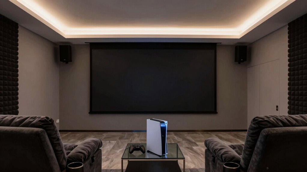 Furthermore, optimizing your room’s acoustic environment by positioning furniture and soft furnishings can help absorb sound reflections and reduce echo. Integrating the right lighting setup with effective soundproofing techniques creates a gaming environment optimized for low latency and high immersion. These elements work together to eliminate distractions, reduce delays caused by environmental noise or poor lighting conditions, and allow you to focus entirely on your game. With careful planning and execution, your projector gaming room will become a sanctuary where smooth visuals and pristine sound elevate your gaming to the next level. The effort you put into these details directly correlates with your overall experience, making every gaming session more enjoyable and less frustrating.