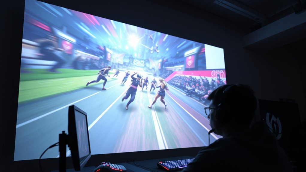 Gaming on a projector can transform your competitive experience by immersing you in a larger-than-life display that rivals professional setups. The expansive screen size makes every detail pop, giving you a tactical advantage and enhancing your sense of immersion. However, when it comes to competitive gaming, there are vital factors to consider—most notably latency issues and screen size. Latency can make or break your gameplay, especially in fast-paced titles where split-second reactions are essential. Projectors, especially those not designed for gaming, may introduce noticeable delays between your input and what appears on the screen. This delay can cause you to miss essential timing windows or react too late, negatively impacting your performance.