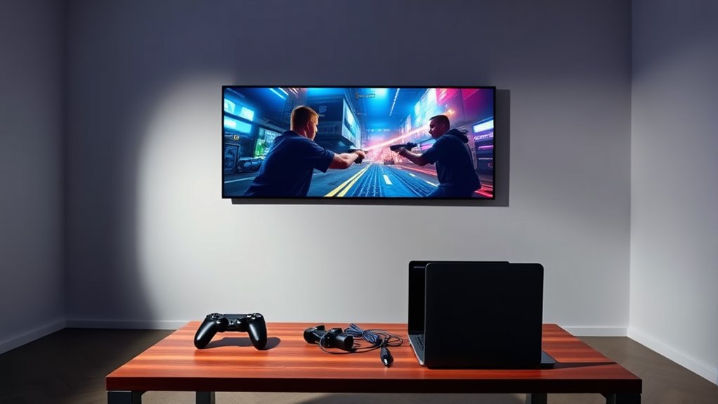Now that you’re armed with these setup tips, your projector becomes a portal to endless adventures, transforming your space into a battlefield or cooperative haven. Think of it as revealing a secret passage where friends become allies and rivals, all within a cinematic universe. With a little patience and the right adjustments, your gaming nights will glow brighter than ever, turning every session into a vivid tapestry woven with laughter, challenge, and shared victory.