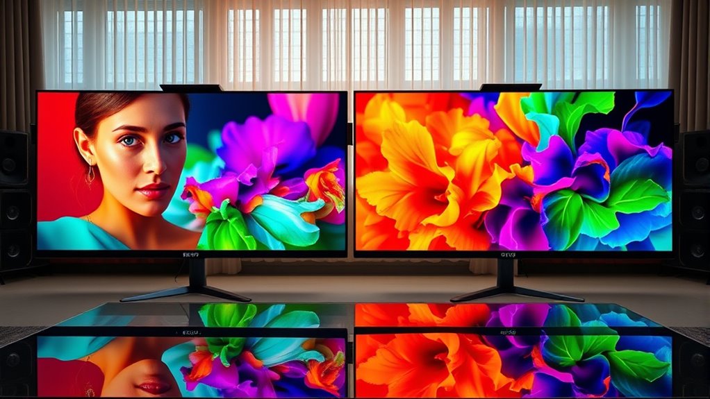 Think of your home display as a painter’s canvas. When you aim for true Rec.709 and Rec.2020 colors, you’re not just adding paint—you’re selecting the perfect pigments to bring scenes to life with vibrancy and accuracy. By calibrating your screen, you’re guiding your brushstrokes, turning a blank canvas into a masterpiece. With the right tools and settings, you’ll craft a viewing experience as vivid and true as an artist’s most cherished creation.