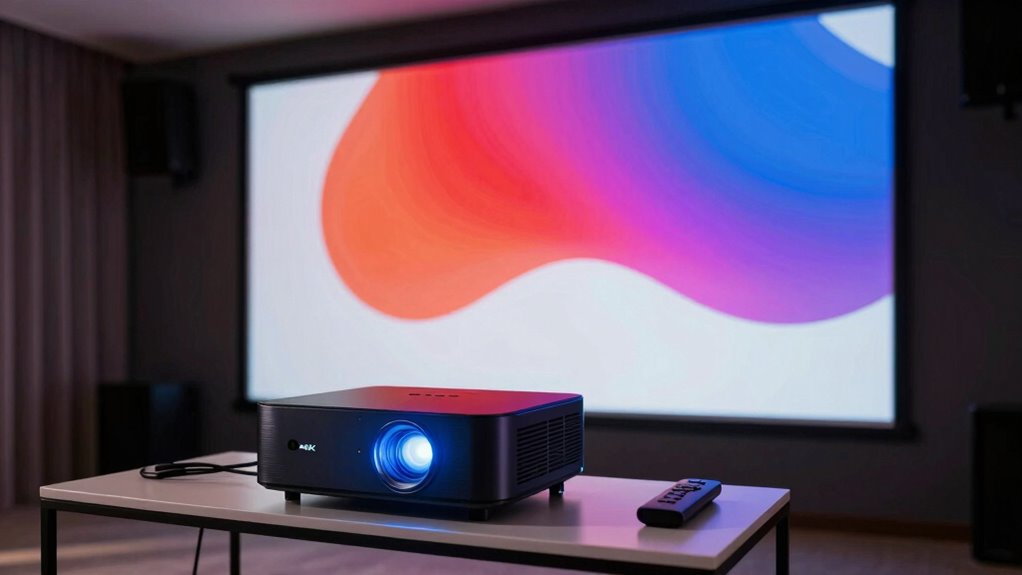 When choosing a 4K projector, focus more on color accuracy, contrast ratio, and lamp lifespan than just resolution. A high resolution won’t guarantee vibrant or true-to-life images without proper color calibration. Long-lasting lamps and advanced color processing improve durability and picture quality. Don’t get caught up in marketing hype; balance specs for the best overall experience. If you keep these tips in mind, you’ll make a smarter, more informed decision about your projector purchase.