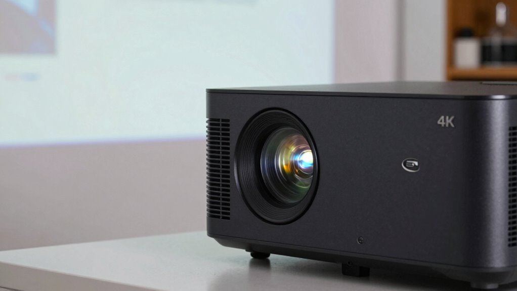 Think of choosing a 4K projector like picking a paintbrush for a masterpiece. The fine print is your brush’s bristles—small details that can make or break your art. Don’t just glance at the size of the stroke; examine the quality of each bristle. When you understand the nuances, your viewing experience becomes a vivid canvas. So, read the fine print carefully—your perfect picture depends on it.