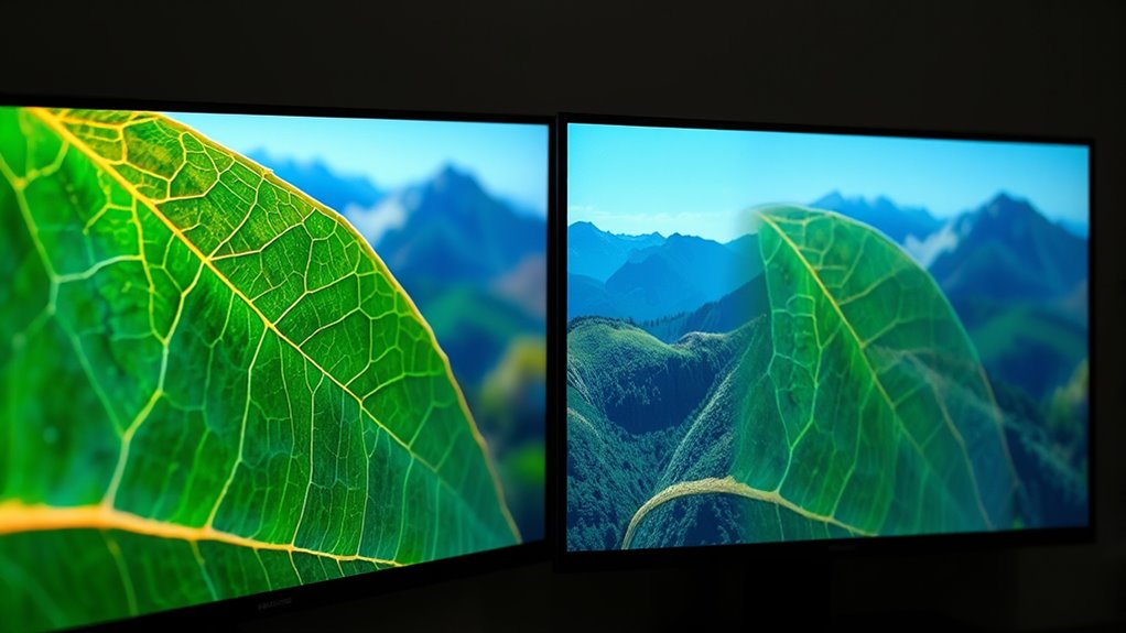 You’ll find that native 4K displays generally offer better color accuracy because they produce true-to-source images with higher color fidelity and consistent color depth. Pixel-shifted 4K can sometimes enhance resolution but might slightly compromise color precision due to processing techniques. For the best color accuracy, go for native 4K, as it maintains richer, more accurate colors and better overall color consistency.