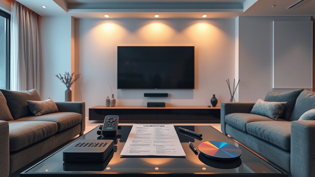 By following this checklist, you guarantee your movie night is perfect with crisp visuals and immersive sound. Have you considered how small adjustments can make a big difference in your viewing experience? Taking the time to calibrate your setup guarantees a seamless, cinematic experience right in your own home. So, why settle for anything less? When everything’s calibrated just right, you’ll enjoy your movies more than ever—because your comfort and quality matter.
