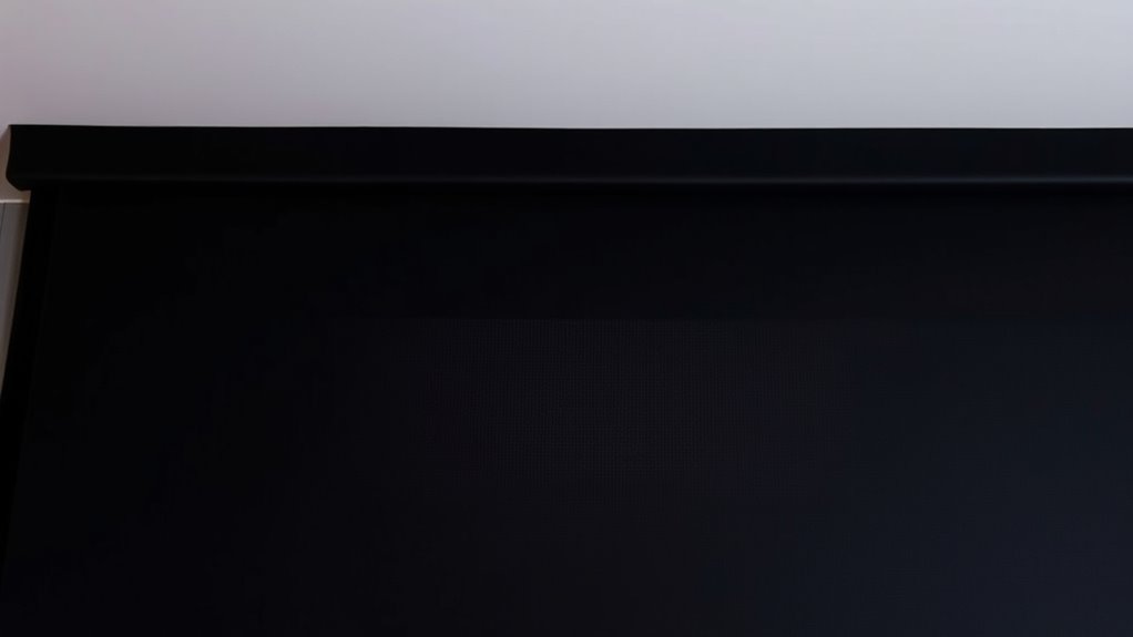 Think of eco-friendly options as a breath of fresh inspiration in your home theater. You can choose sustainable materials like recycled fabrics or biodegradable composites for acoustically transparent screens. These eco-friendly alternatives help reduce your carbon footprint without sacrificing performance. By selecting such materials, you’re weaving sustainability into your setup, making your viewing experience both environmentally responsible and visually stunning, like a green oasis in your entertainment space.