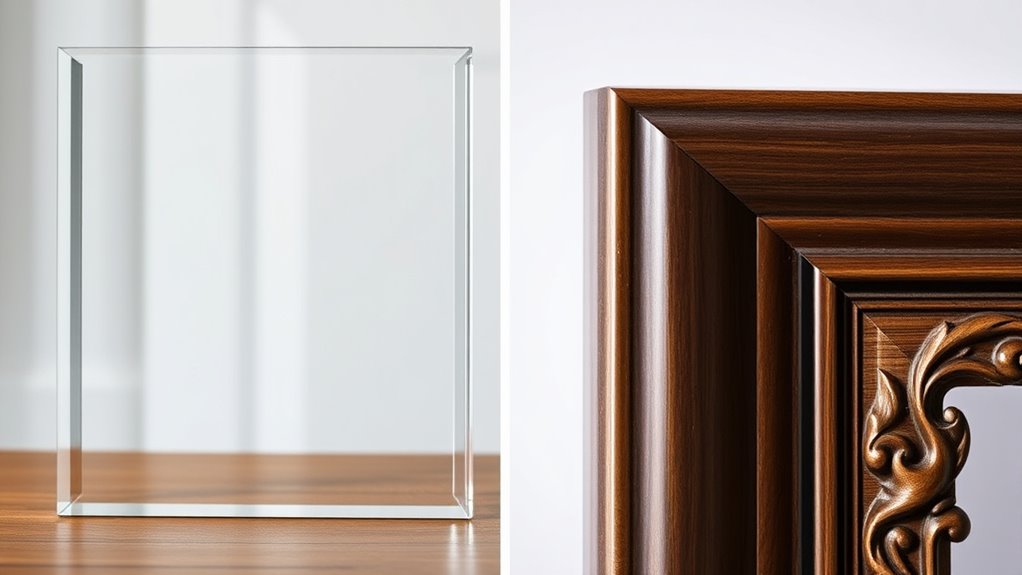 - Frameless offers a sleek, minimalist look, while fixed frames add decorative or traditional elements to the design.