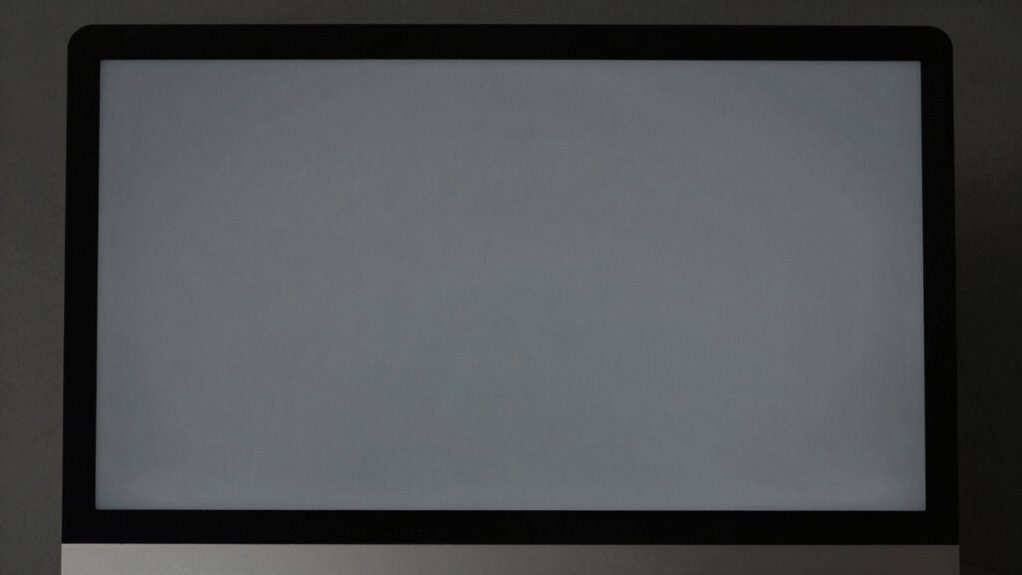 Ambient lighting considerably influences gray screen effectiveness by affecting your ambient contrast and lighting adaptation. In well-lit environments, gray screens reduce glare and eye strain better than white screens, allowing for better color accuracy. When lighting conditions change, your eyes adapt more smoothly to gray backgrounds, maintaining consistent visual comfort. This helps you focus on detail, minimizes reflections, and enhances overall viewing accuracy, especially in fluctuating lighting environments.