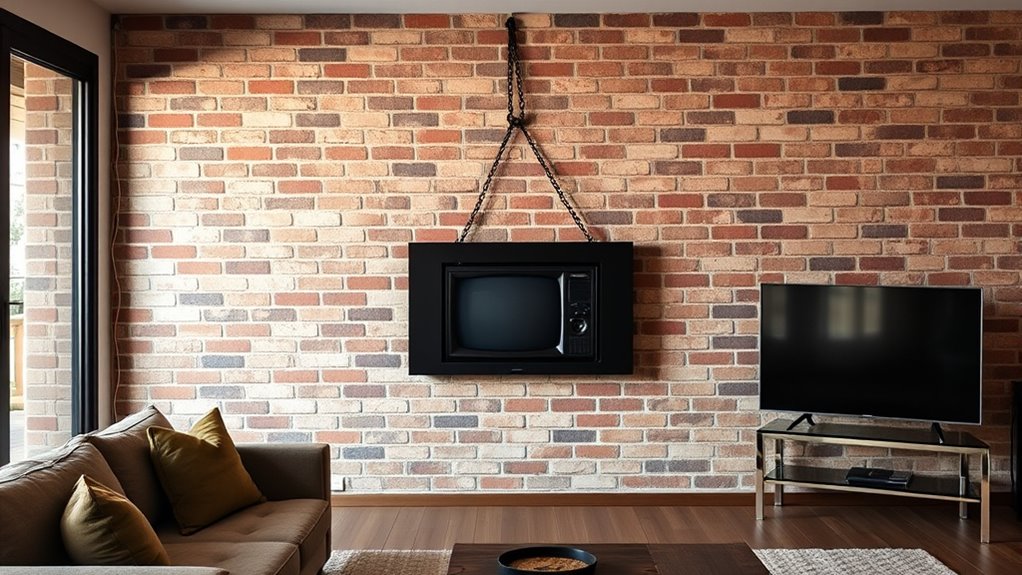 Did you know that your wall mount size limitations depend on the mount’s design and your wall’s compatibility? Larger screens often require heavy-duty mounts, which may not fit every wall type. Always check the mount size limitations and verify your wall can support the weight and size of your screen. To avoid surprises, measure your space carefully and choose a mount compatible with your wall to secure your TV safely.