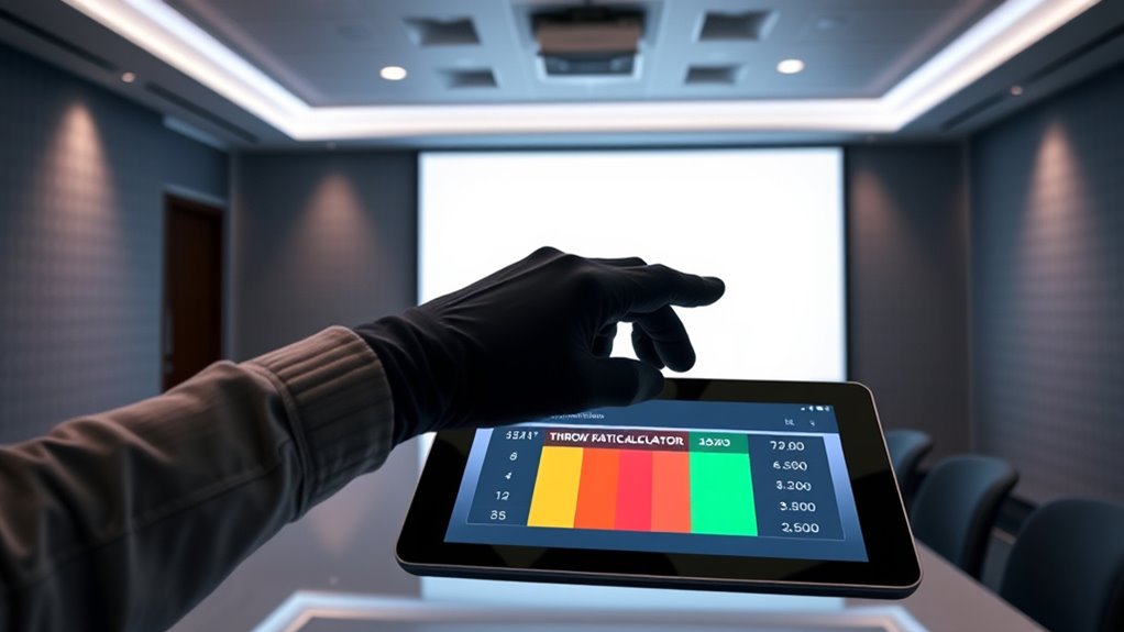 Mastering throw ratio calculators is like wielding a trusty map in uncharted territory—you’ll navigate your setup with confidence. By understanding the basics, measuring carefully, and interpreting results wisely, you’ll avoid pitfalls like a seasoned explorer avoiding quicksand. Remember, precision today guarantees your home theater or presentation space looks cinema-perfect tomorrow. So, don’t be a relic in a museum—embrace these tools and make your projection setup as spot-on as a Renaissance masterpiece.