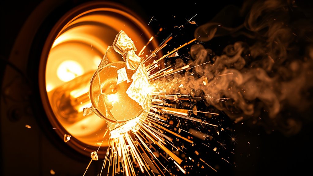 You can often spot warning signs of an impending bulb explosion by paying attention to your projector. Look for flickering images, dimming brightness, or unusual noises, which indicate the bulb’s lifespan is nearing its end. These warning signs suggest it might be time to replace the bulb before it explodes, preventing damage and ensuring your projector continues to operate smoothly. Regular maintenance helps catch these signs early.
