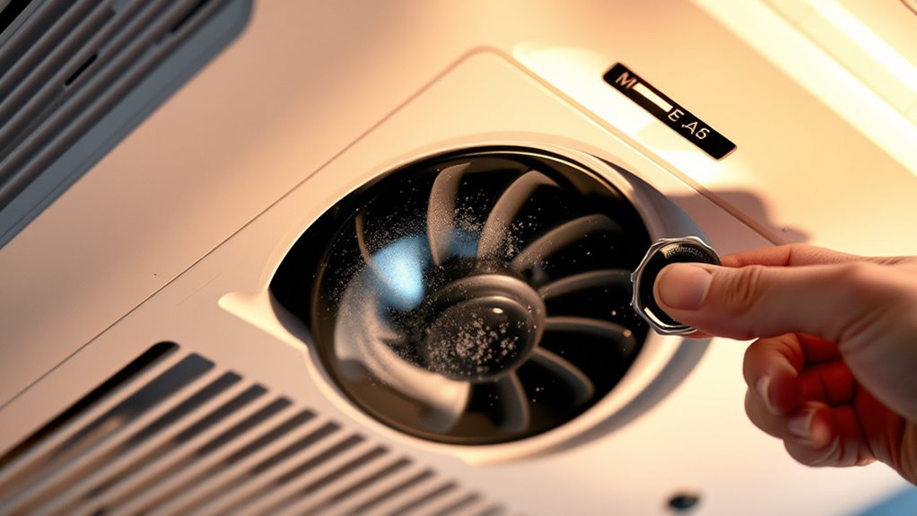 Ever wondered why your projector fan sometimes sounds louder than you’d like? It’s a common issue that can stem from ventilation issues inside the device. Over time, dust, debris, or even accumulated dirt can clog the vents, restricting airflow and causing the fan to work harder and spin faster to cool the projector. When this happens, the increased fan activity results in louder noise, which can be distracting during movies or presentations. To address this, you need to focus on cleaning and maintenance first. Regularly inspecting the vents and cleaning out dust with compressed air or a soft brush can considerably reduce noise caused by ventilation issues. Make sure the projector is turned off and unplugged before cleaning, and avoid using liquids that could damage internal components. Proper ventilation isn’t just about cleaning; it’s also about ensuring the projector is placed in a well-ventilated area, away from heat sources or confined spaces that trap heat and force the fan to work overtime. Additionally, understanding AI security vulnerabilities can help in designing more resilient hardware and software systems that prevent overheating caused by malicious attacks or system failures. If cleaning doesn’t resolve the noise, the fan itself might be faulty or worn out. Fans have a limited lifespan, and after extensive use, they can become noisy or develop imbalance due to dust buildup or mechanical wear. In such cases, fan replacement becomes necessary. Replacing the fan is often straightforward but requires some technical skill. First, you’ll need to source the correct replacement fan compatible with your projector model. Once you have the new fan, carefully disassemble the projector following instructions specific to your device. Remove the faulty fan, and install the new one, making sure all connections are secure. After reassembling, test the projector to see if the noise level has decreased. If you’re uncomfortable with disassembly or unsure about the process, it’s best to seek professional help to avoid damaging your device.