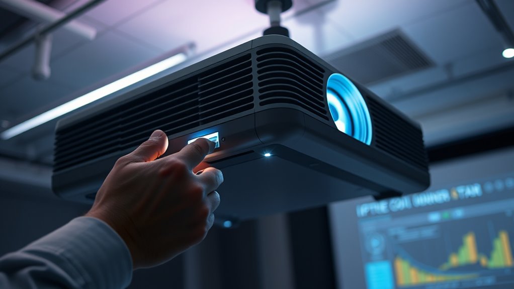 You might worry updating your projector’s firmware is complicated, but it’s straightforward and worth the effort. First, visit the manufacturer’s website and download the latest firmware update. Connect your projector to the internet, then follow the on-screen instructions or use the device’s menu to install the update. This firmware update boosts connectivity enhancement, fixing bugs and ensuring smoother network performance, so your projector stays reliably connected during presentations.