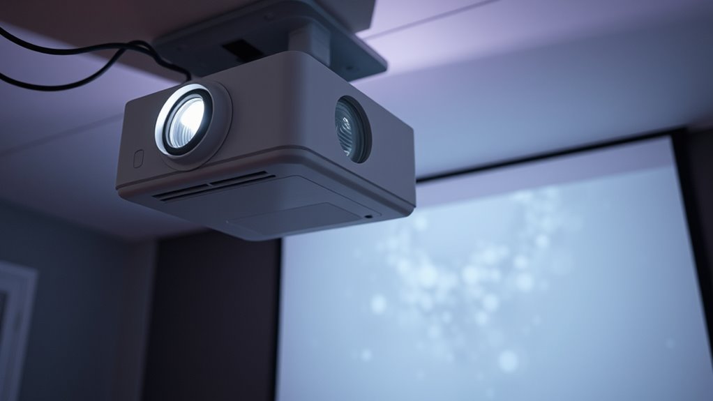 Remember, troubleshooting your projector is like tuning a fine instrument—you need patience and attention to detail. I once had a client whose 4K projector kept downgrading to 1080p; a simple firmware update fixed it, restoring pristine clarity. Don’t let technical hiccups dim your experience. With methodical checks and a bit of persistence, you’ll soon enjoy your content in stunning 4K, just like a perfectly played symphony—clear, sharp, and engrossing.