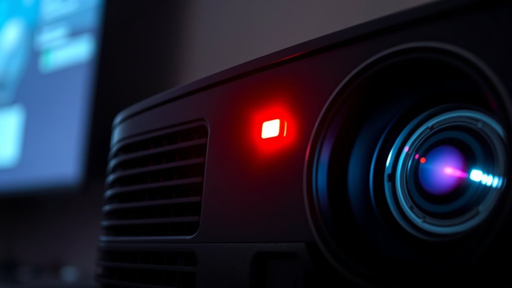 When your projector displays a fan error or warning light, acting promptly can save you time and prevent further damage. Regular maintenance, like cleaning vents and ensuring proper airflow, can considerably reduce these issues. Did you know that over 60% of projector malfunctions are caused by overheating or fan problems? Staying attentive to warning signs and performing routine checks keeps your device running smoothly, so you can enjoy uninterrupted viewing without unexpected interruptions.