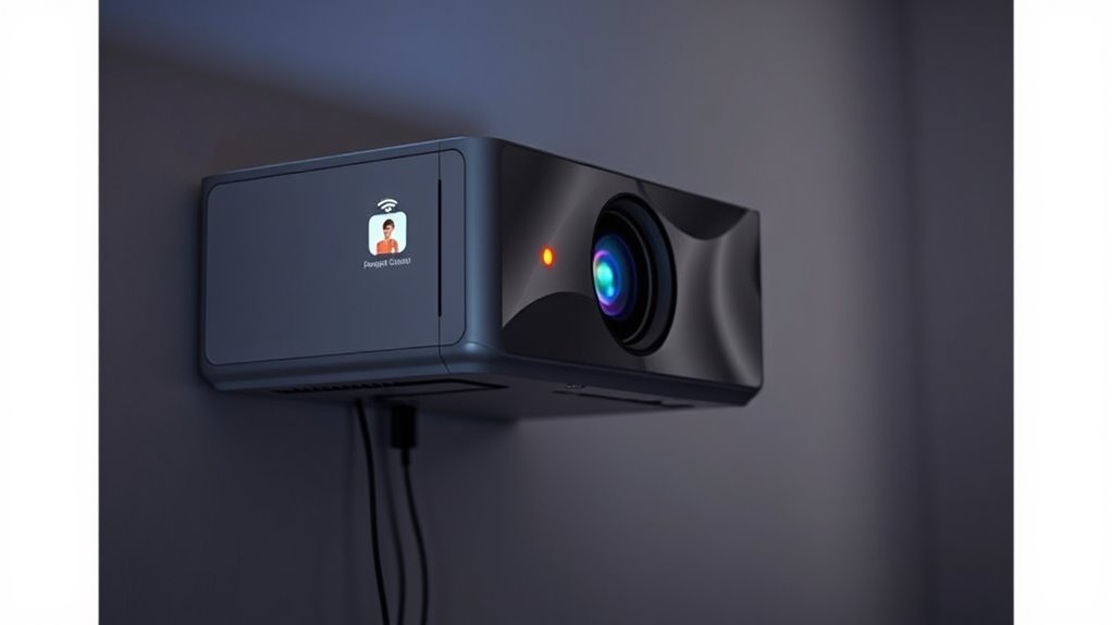 Your smart projector supports various security protocols like WPA2 and WPA3 for wireless encryption, ensuring your connection stays secure. It’s important to check your network’s security compatibility to prevent connection issues. Most modern projectors also support WPA3, offering enhanced protection. Always use strong passwords and update your device’s firmware to maintain peak security. By understanding these security protocols, you can enjoy seamless streaming while keeping your data safe.