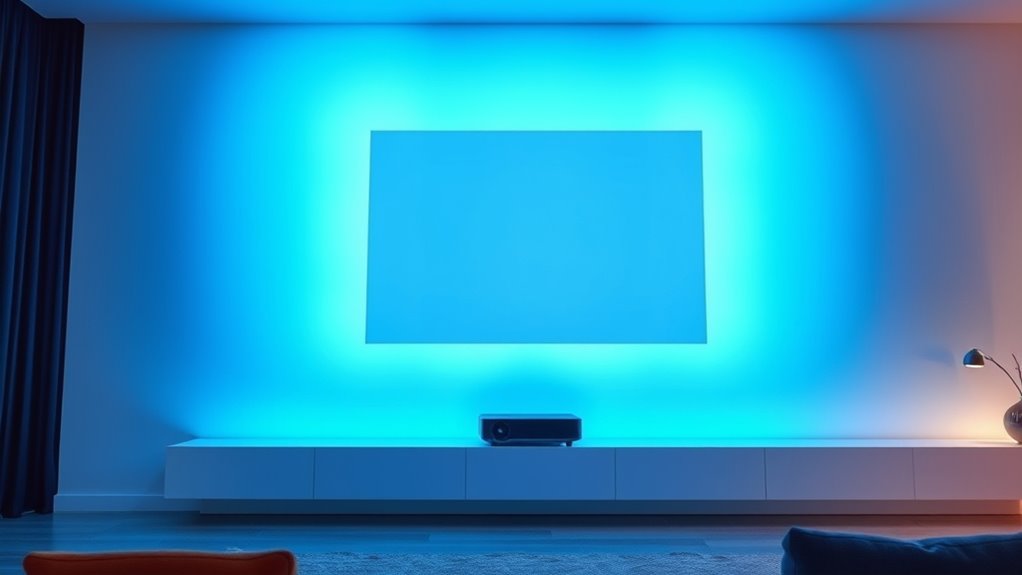 A key factor in selecting a 4K laser projector is its resolution and how it translates into image clarity. With a resolution of 3840×2160 pixels, 4K projectors offer four times the detail of Full HD, making images sharp and vibrant, especially on large screens. Higher resolution enhances fine details, guaranteeing clarity even at close viewing distances. The optical system’s quality, including lens precision and alignment, also plays a vital role in delivering crisp images. Technologies like HDR support and improved contrast ratios further boost picture realism, complementing the high resolution. Importantly, native 4K projectors display true 4K content without scaling artifacts, preserving original image fidelity. All these factors combined ensure a sharp, vivid, and immersive viewing experience.