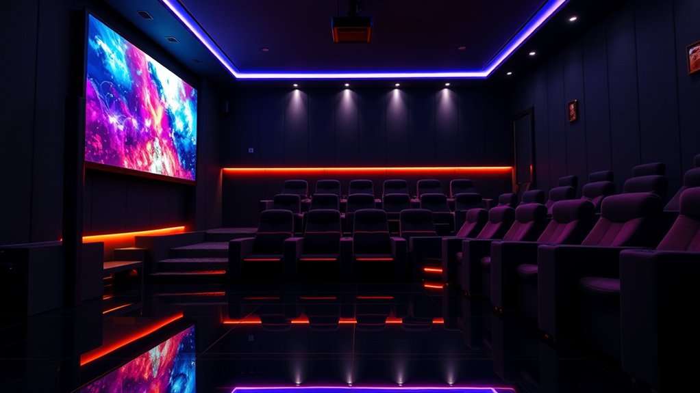 4K projectors offer a larger, more cinematic viewing experience that TVs can’t match in size, making your home theater feel more immersive. While high-end 4K TVs deliver sharper images and better contrast, projectors excel with vast screens and flexible placement. I find projectors perfect for creating a true theater vibe, but if you prioritize clarity and brightness, a top-tier 4K TV might be the better choice for your space.