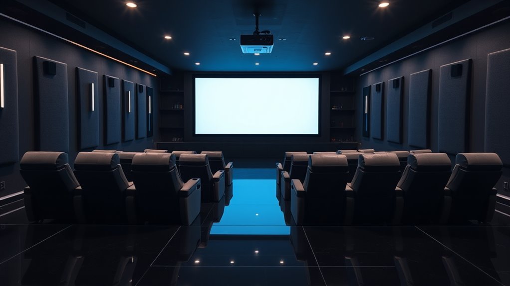 A key factor in selecting a 4K projector for your basement theater is its resolution and ability to deliver crisp, detailed images. With a resolution of 3840×2160 pixels, 4K projectors provide four times the pixel count of Full HD, resulting in sharper, more realistic visuals. This higher resolution is especially important on large screens, reducing pixelation and ensuring clarity during immersive scenes. True 4K support, combined with advanced pixel-shifting technology, guarantees accurate rendering of 4K content, even in high-motion moments. Additionally, the projector’s native resolution quality and its ability to decode 4K signals directly substantially impact overall sharpness. Proper calibration and high-quality lenses further enhance clarity, preventing blurriness and maintaining focus across the entire screen for a cinematic experience.