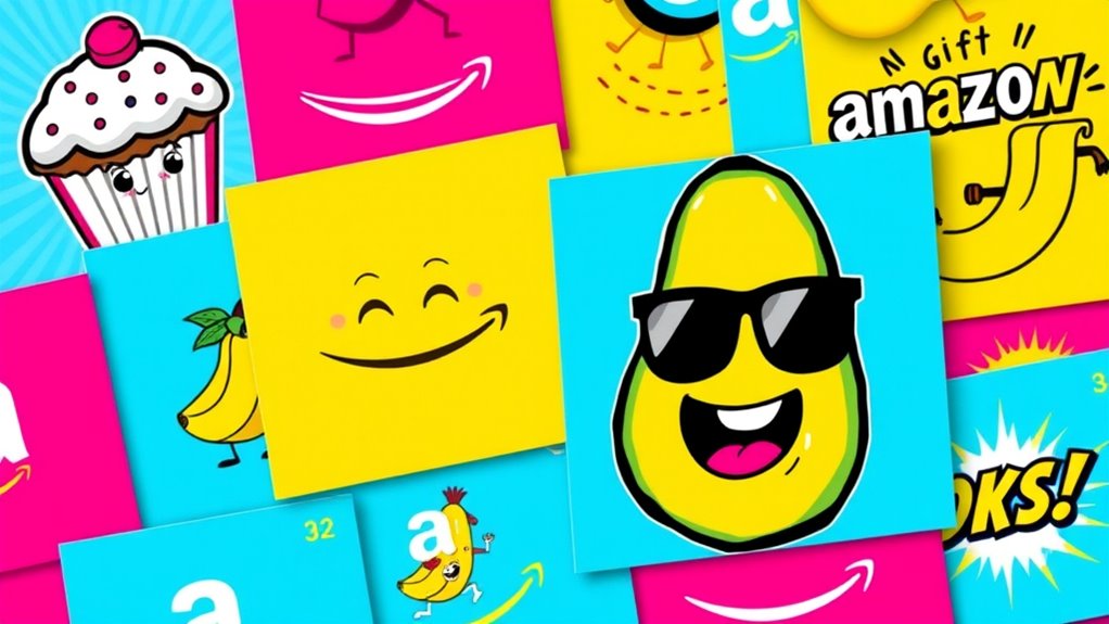 Choosing a visually appealing funny Amazon e-gift card involves more than just picking a silly design; it’s about making sure the visuals catch the eye and match the recipient’s personality. Bright colors and witty graphics help the card stand out among other gifts and boost excitement. Creative, humorous illustrations set a lighthearted tone, perfect for casual or funny occasions. Well-designed visuals can also enhance the perceived value of the gift card, making it feel more special. It’s important that the style aligns with the recipient’s sense of humor so the humor resonates and feels personal. Ultimately, eye-catching and fun visuals make the gift memorable, ensuring it sparks a smile even before it’s redeemed. Visual appeal truly plays a essential role in making the gift extra delightful.