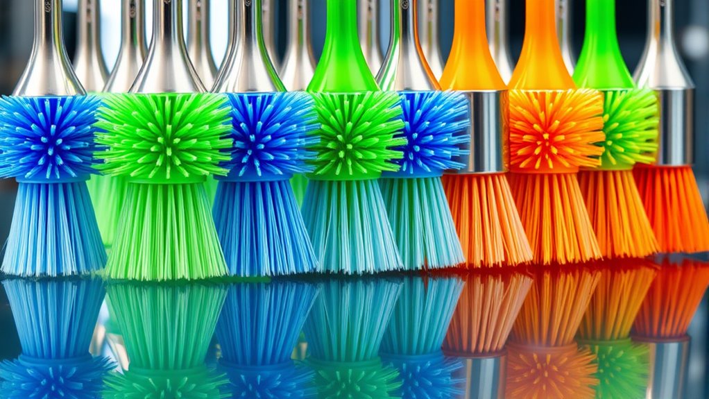 Selecting an anti-static cleaning brush requires careful attention to the quality of its materials, since these directly influence static dissipation and durability. High-quality brushes use conductive fibers like carbon or nylon, which effectively dissipate static charges during cleaning. The bristle material should resist wear and breakage to maintain consistent static control and cleaning performance over time. Additionally, durable handle materials such as reinforced plastic or metal enhance longevity and help preserve static properties through repeated use. Proper grounding or dissipative handles are essential to prevent static buildup and discharge. Certification or testing, like compliance with ESD standards, further assures that the brush materials meet necessary static safety requirements. Choosing quality materials ensures your cleaning tools remain effective and reliable.