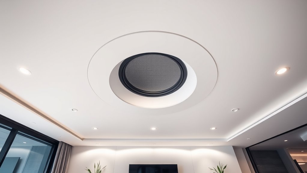 When choosing a ceiling subwoofer installation kit, I look at compatibility with my speakers and how easy it is to install with the right tools. Space limitations and the size of the kit matter, so it fits comfortably in my ceiling. Finally, I consider the acoustic performance, material durability, and finish to guarantee long-lasting, quality sound.