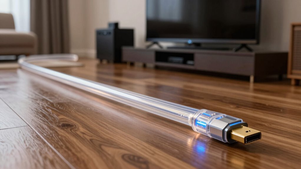 The maximum length for maintaining 8K signal quality with fiber optic HDMI 2.1 cables is around 100 feet. Honestly, this is like a magic wand that lets you enjoy stunning 8K visuals without losing clarity or detail. Beyond that, signal degradation can start to happen, so if you need longer runs, consider active extenders or repeaters. Keep your cables within this range for the best, jaw-dropping picture quality.