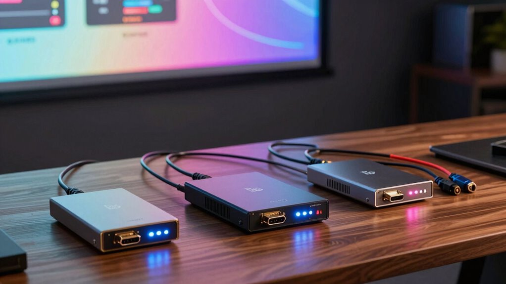 A problem shared is a problem halved, and troubleshooting HDMI extenders is no different. First, check all connections to guarantee they’re secure. Then, test each component individually to isolate the issue. Replace any damaged cables and update firmware if possible. Keep in mind, interference from nearby electronics can cause signal loss, so move devices away from potential sources of interference. These steps usually help restore a clear signal.