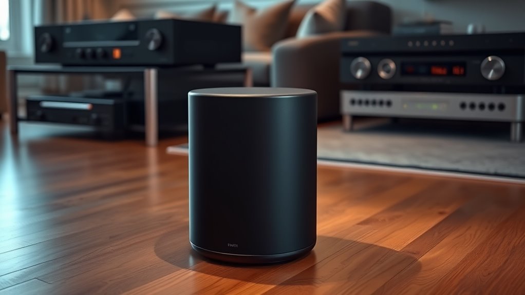 Wireless subwoofers connect seamlessly with multiple audio devices through Bluetooth, Wi-Fi, or proprietary apps. I simply pair the subwoofer with each device via Bluetooth or connect it to my Wi-Fi network, then switch between sources effortlessly. Many high-end models allow multiple device pairing or easy switching, making it simple to enjoy deep bass across all my audio sources without hassle. It’s all about user-friendly setup and reliable wireless connections.