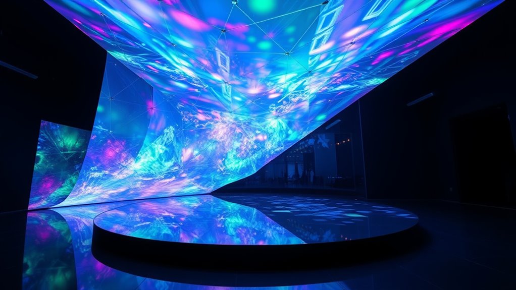If you’re exploring the top holographic projection films for stunning visuals in 2025, I’ve got you covered. From foldable, portable screens to large outdoor-compatible films, there’s a wide range to suit different needs like home cinemas, events, or displays. Materials like PET and polyester fiber guarantee durability, while features like high light transmission and easy installation make setups simple. Stay with me to discover detailed options and tips for selecting the perfect holographic film for your project.