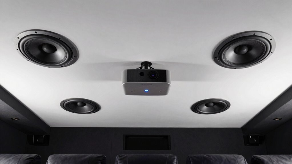In the end, choosing the right in-ceiling speakers feels like finding the perfect harmony for your home theater. It’s about balancing sound clarity with seamless integration, creating an ambiance that’s inviting yet unobtrusive. When you select the right set, every movie night becomes a cherished experience, quietly elevating your space. Trust your instincts, and let the right speakers subtly transform your viewing into a mesmerizing journey.