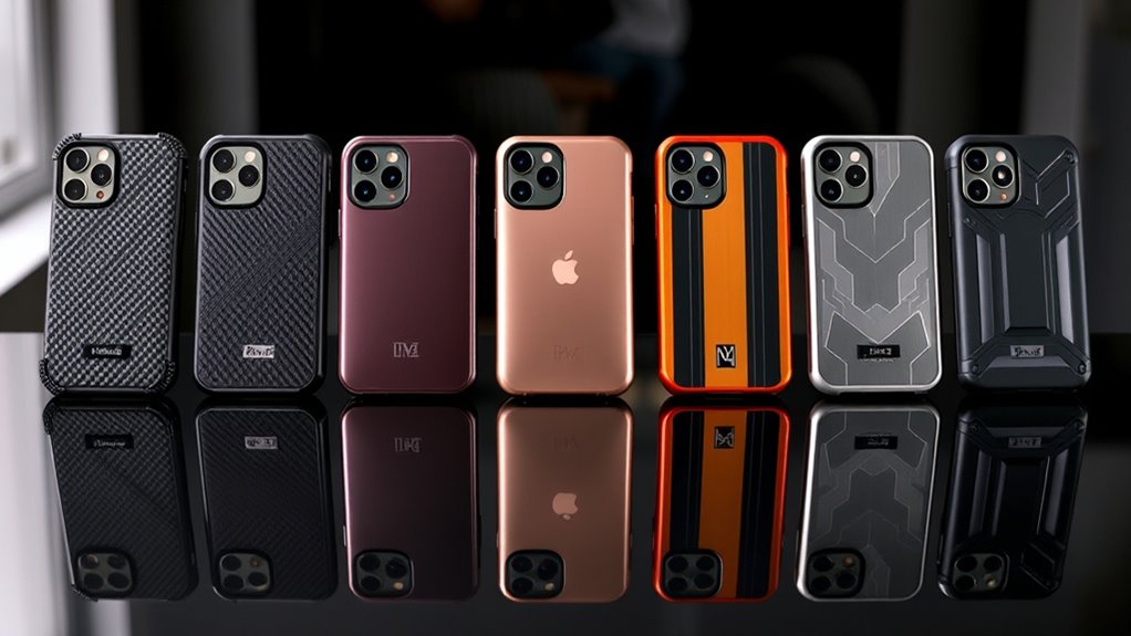 I’ve checked out the top iPhone 17 Pro Max cases of 2025, focusing on style and protection. From rugged, military-grade options to sleek transparent designs, there’s something for everyone. Many cases support MagSafe and wireless charging, and some even include extra camera or screen protection. Whether you prefer a slim fit or heavy-duty coverage, you’ll find choices that combine durability with style. Keep exploring, and you’ll discover the perfect case for your needs.