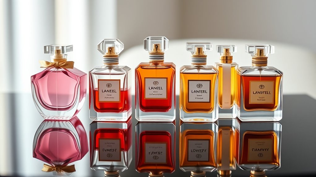 Ingredient transparency has become a *vital* factor in choosing perfumes for women in 2025, as more brands prioritize clear, honest labeling. I find it reassuring when brands openly list their ingredients because it allows me to verify that the fragrance is free from harmful chemicals and allergens. This transparency is especially important if you have sensitivities or allergies, as it helps you make safer, more informed choices. Brands that disclose their ingredient lists often follow stricter safety and quality standards, which boosts my confidence in their products. Plus, knowing the ingredients helps me select perfumes with ethically sourced, vegan, cruelty-free, or organic components. Overall, ingredient transparency isn’t just about honesty; it’s about ensuring I enjoy a fragrance that aligns with my values and health needs.