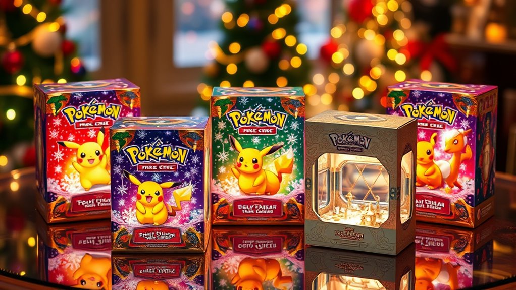 - They feature exclusive foil promo cards, booster packs, and festive accessories that enhance collection and holiday excitement.