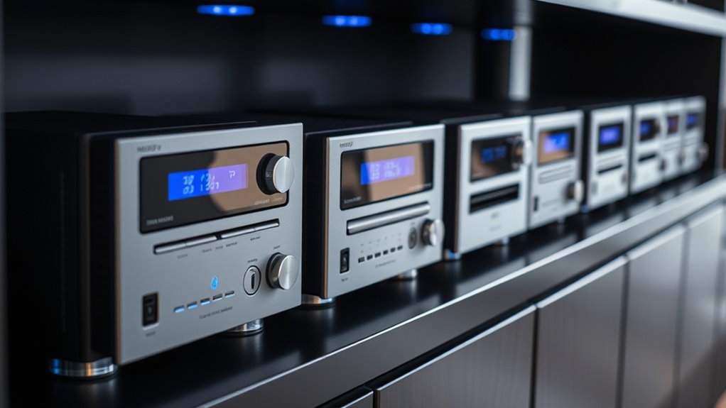 Premium CD players enhance audio fidelity by using high-quality components and advanced digital-to-analog converters, which reduce noise and distortion. I notice richer, more detailed sound with clearer highs and deeper bass compared to standard models. They also feature superior power supplies and precise clocking, ensuring consistent playback. These improvements make my listening experience more immersive, revealing nuances and textures that I’d miss with regular players.