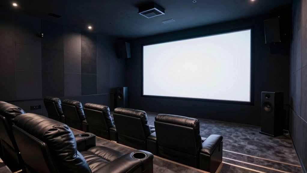 No, premium bundles typically don’t include soundproofing accessories. I’ve found that these bundles focus more on high-quality projectors, screens, and audio equipment. If soundproofing is important to you, I recommend purchasing dedicated panels or panels separately. It’s a worthwhile investment to guarantee your home theater experience isn’t disturbed by outside noise, especially when you’re enjoying those big, cinematic moments.