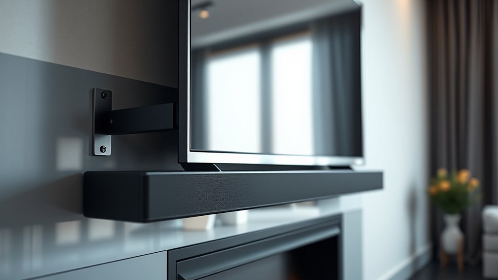 Think of your soundbar mounting bracket as the sturdy branch supporting a soaring kite — it keeps your home theater soaring smoothly. When you choose the right mount, you’re guiding your audio experience to new heights, free of clutter and chaos. So, pick a bracket that feels like the steady hand anchoring your setup, turning your living room into a harmonious sanctuary. Elevate your sound, elevate your space.