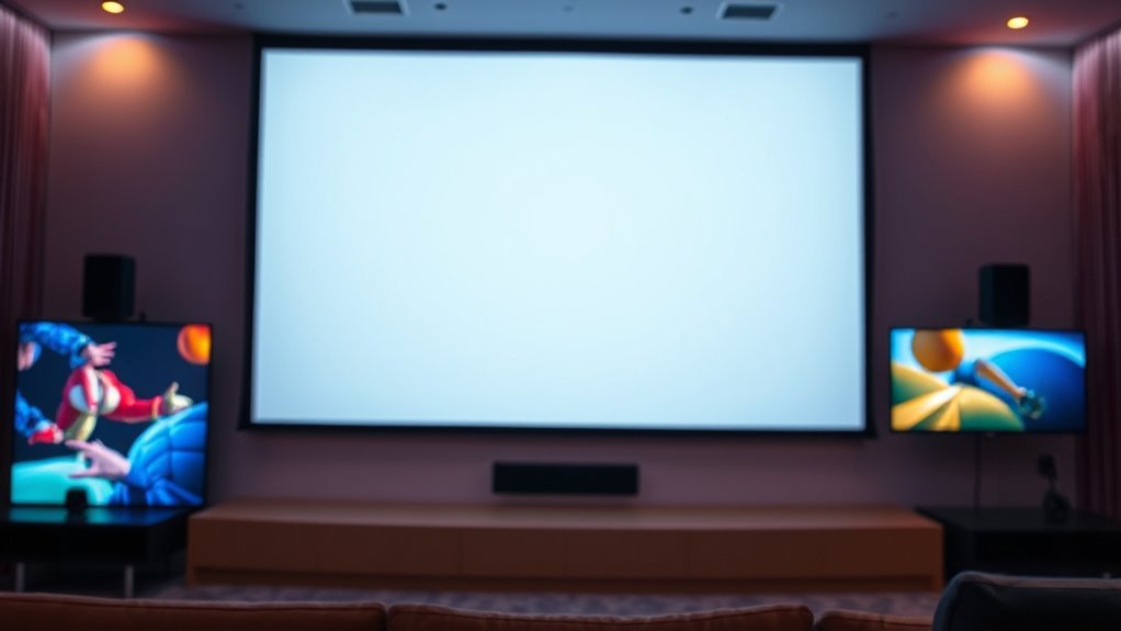 Choosing the right projector screen gain is like tuning a musical instrument—small adjustments can create harmony or dissonance. When you pick the perfect gain for your setup, you’ll unleash the true potential of your projector, transforming your space into a cinematic escape. Remember, the right screen isn’t just a piece of fabric; it’s the canvas that brings your movie nights to life. So, choose wisely and enjoy a picture-perfect performance every time.