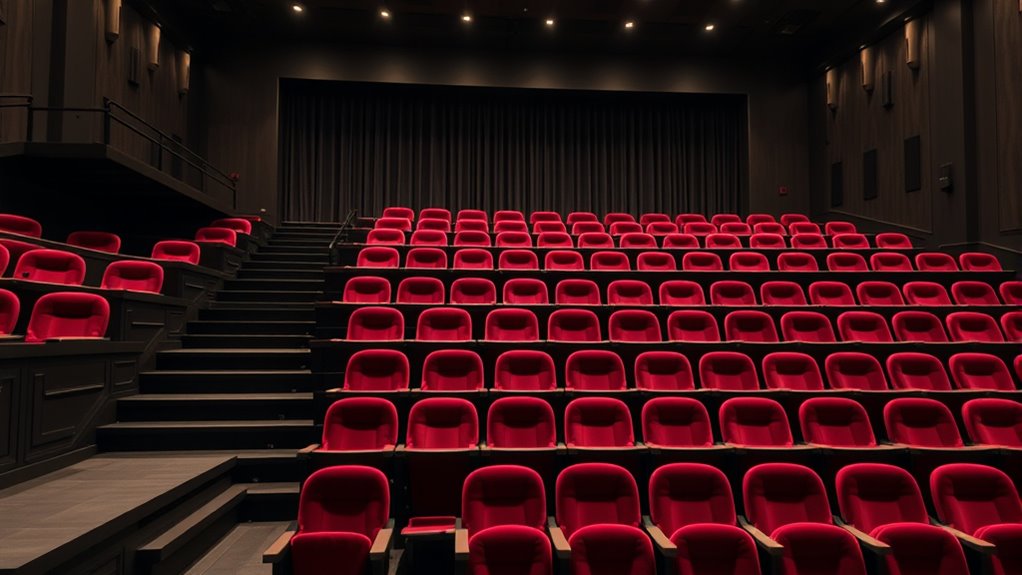 If you’re looking for the best riser platforms for theater seating in 2025, I recommend considering models that support heavy loads, have adjustable heights, and feature slip-resistant surfaces for safety. Lightweight, modular designs make setup easy, while durable materials guarantee longevity. Whether you’re boosting stage setups or audience comfort, there’s a perfect fit for your needs. Keep exploring to discover top options that combine stability, safety, and versatility for any theater environment.