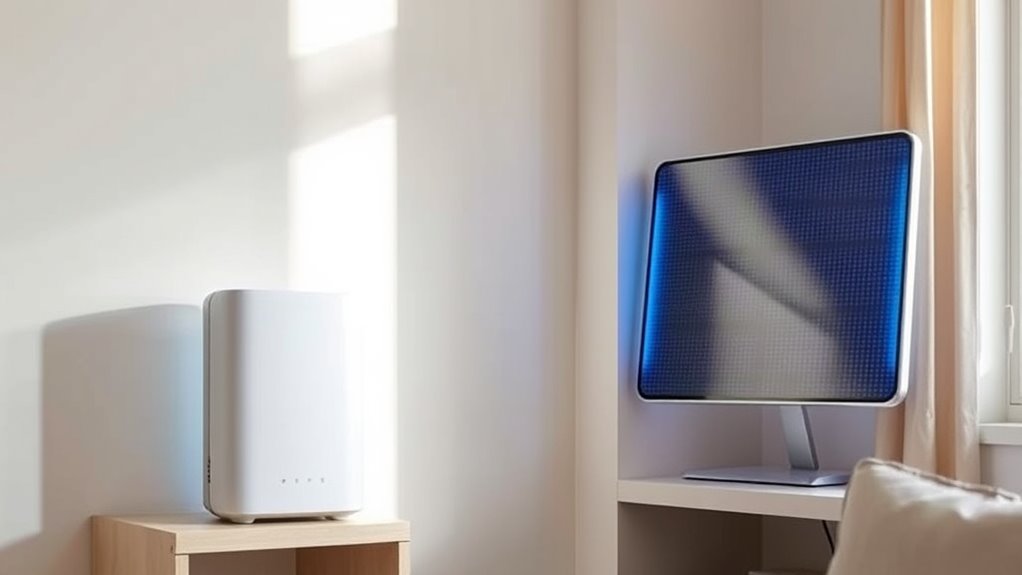 Choosing the right size for my small room air screen device is like finding the perfect fit in a crowded closet—too big feels overwhelming, too small won’t do the job. I measure my space carefully, considering ceiling height and furniture placement, then pick a device that matches those dimensions. It’s about balancing power and size to maximize comfort without sacrificing precious space.