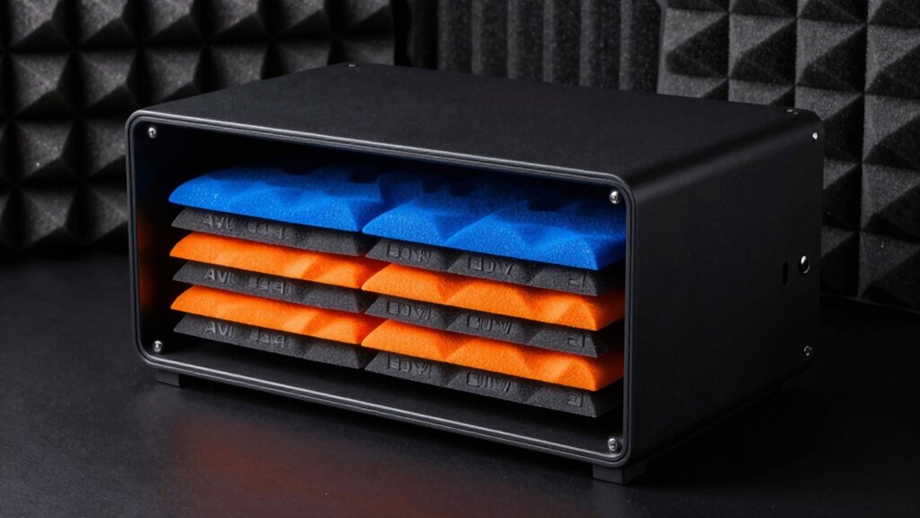 Imagine your AV rack nestled on a set of sleek, sound-absorbing pads, each one like a tiny fortress guarding against unwanted vibrations. When you choose the right isolation pads, you’re not just reducing noise—you’re creating a sanctuary of pure, crisp sound, free from rattles and hums. It’s like giving your gear a soft, supportive bed, letting your music and movies breathe freely and shine brighter. Your perfect setup awaits—just pick your ideal pads and enjoy the silence.