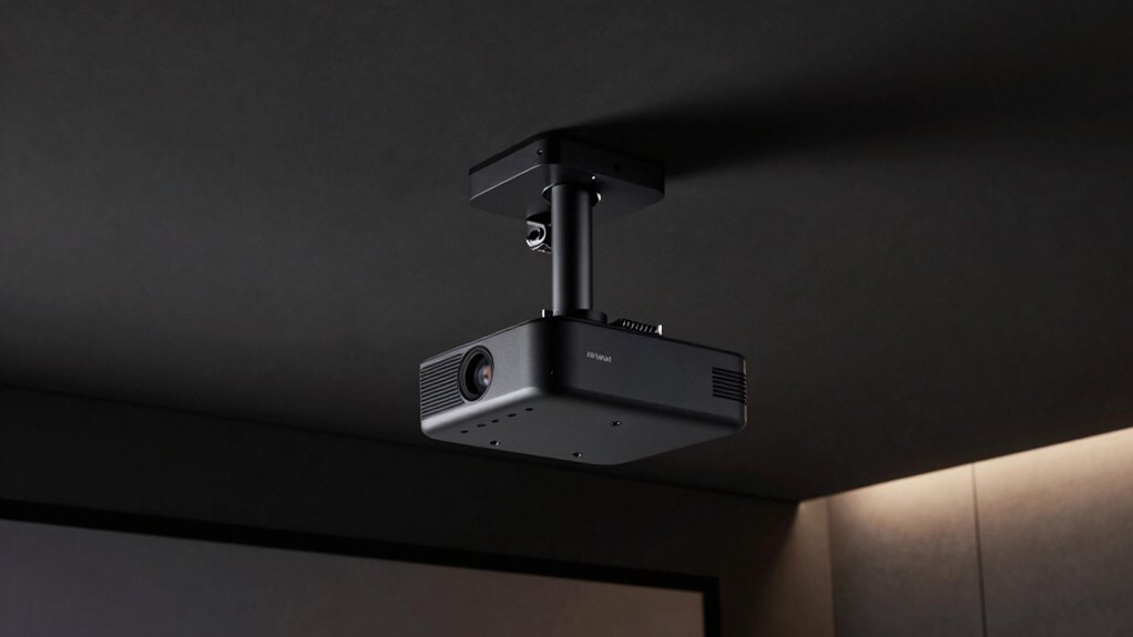 Yes, these mounts can be installed on uneven or textured ceilings. I’ve found that most universal mounts come with adjustable brackets and levelers, which help compensate for irregular surfaces. While installation might take a little extra effort, I’ve successfully mounted projectors on various textured ceilings by carefully adjusting the mount’s tilt and rotation. Just make certain you use appropriate anchors and tools for the best stability and security.