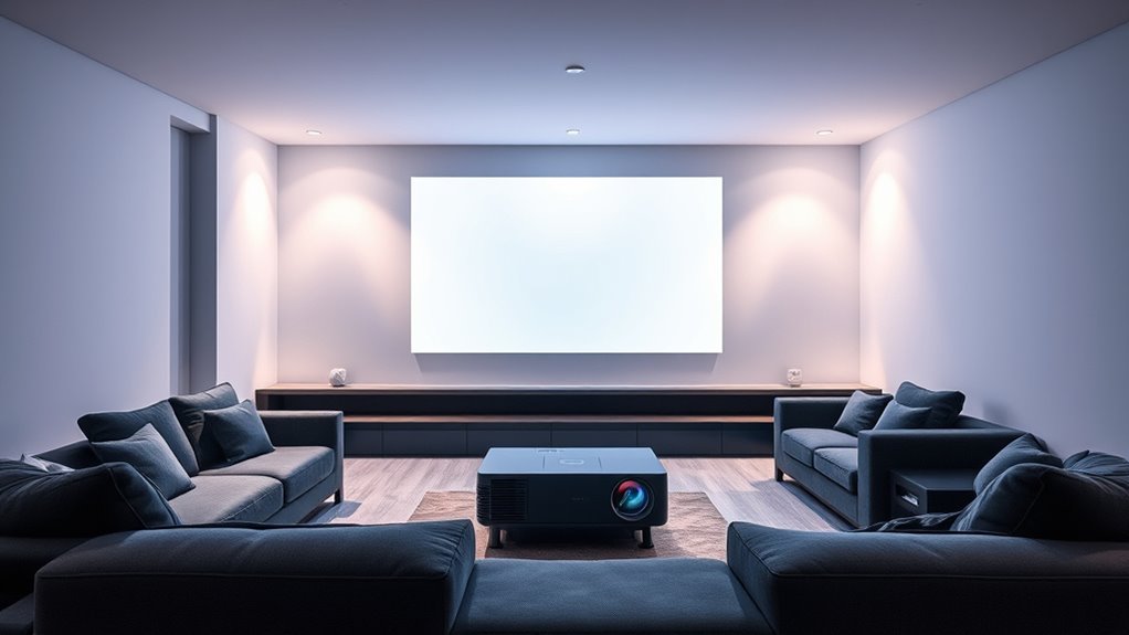 If you’re looking for the best wireless 4K projectors of 2025 to create a stunning home theater, I’ve got you covered. I’ve found models that are portable, easy to set up, and packed with smart features like Android TV, Dolby sound, and WiFi 6 for seamless streaming. Brightness levels and image quality vary to suit indoor and outdoor use, with flexible mounting options. Keep exploring, and you’ll discover how these projectors can transform your viewing experience.